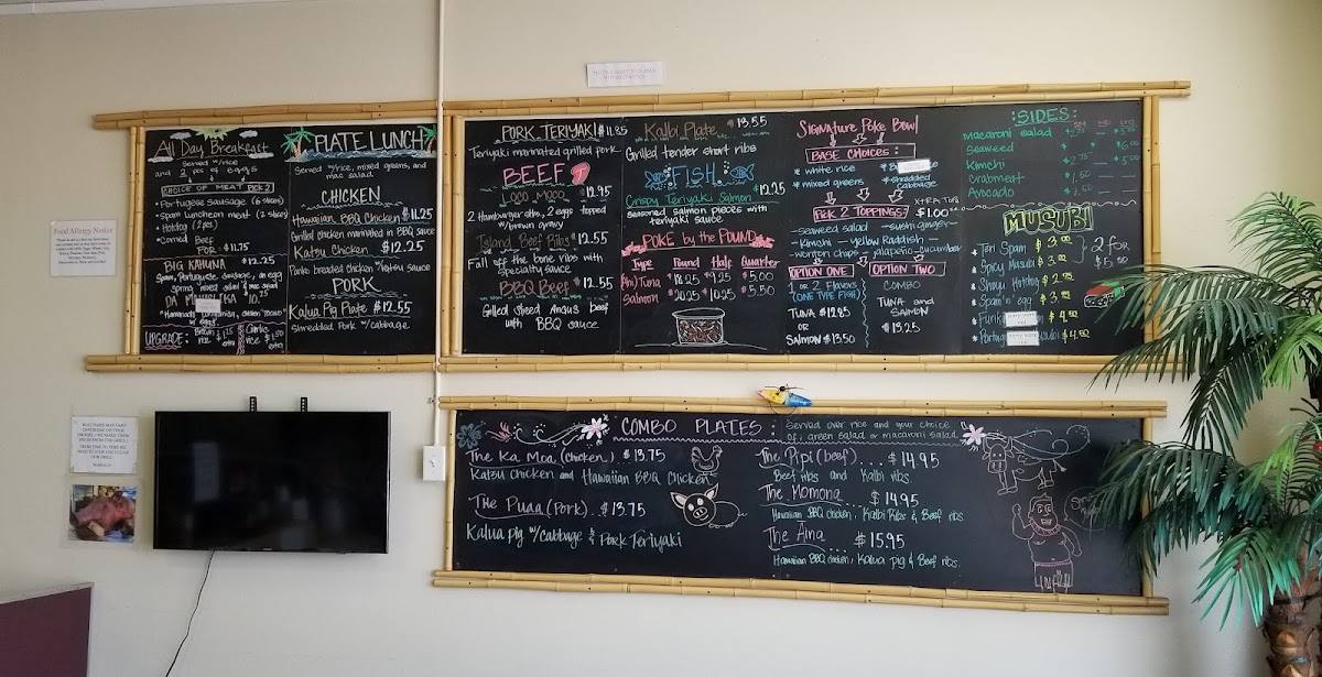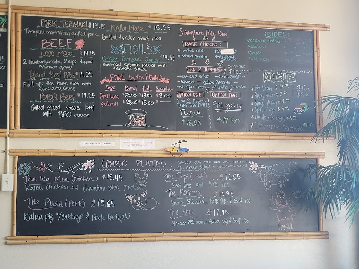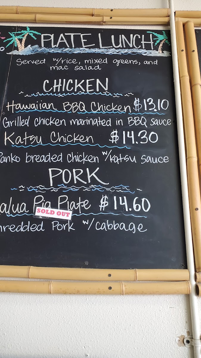 Best Hawaiin food I've had. I usually get the Momona or the Aina. The bbq chicken and beef ribs are delicious. If you like poke, the options here are great too.
